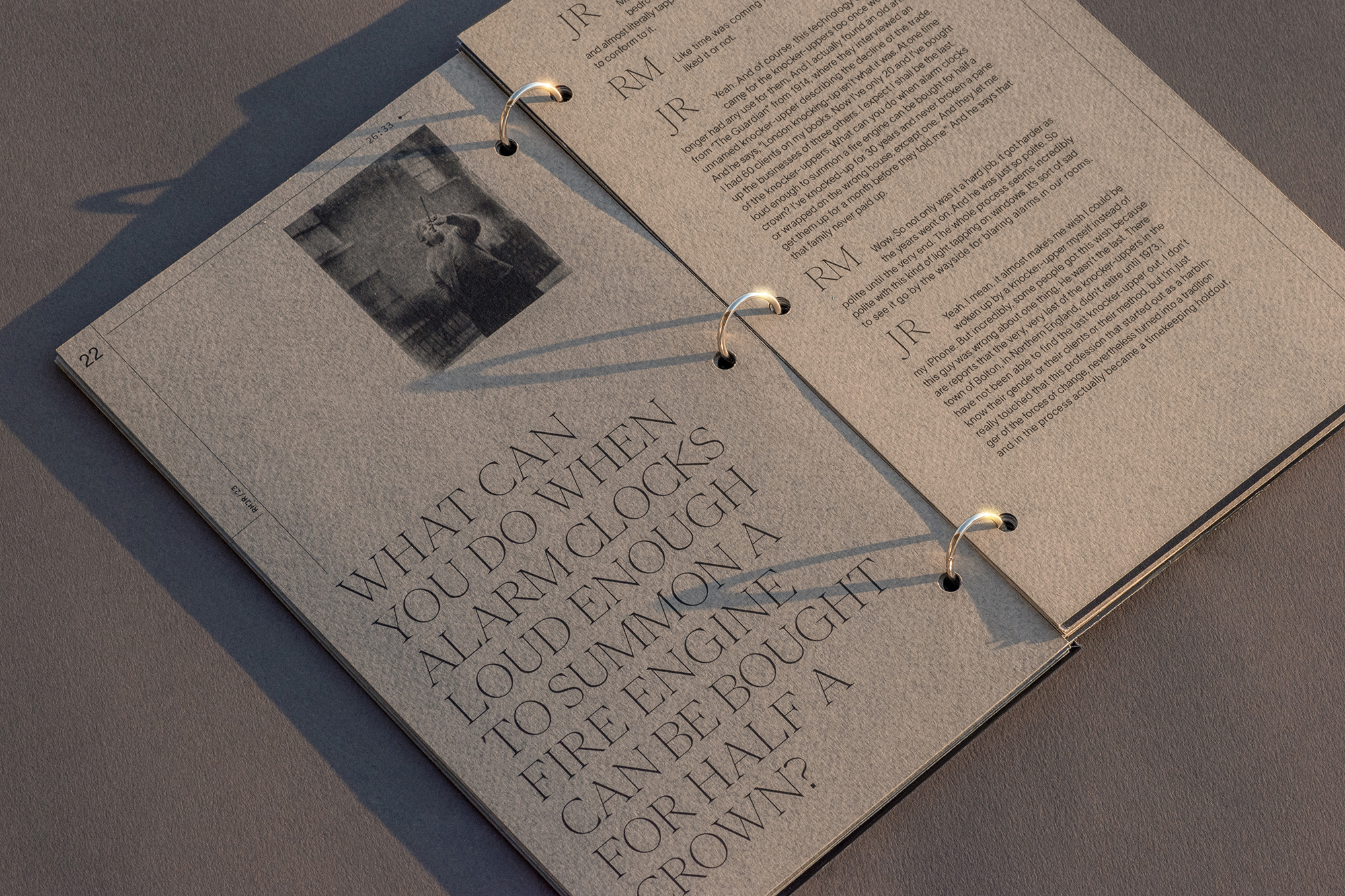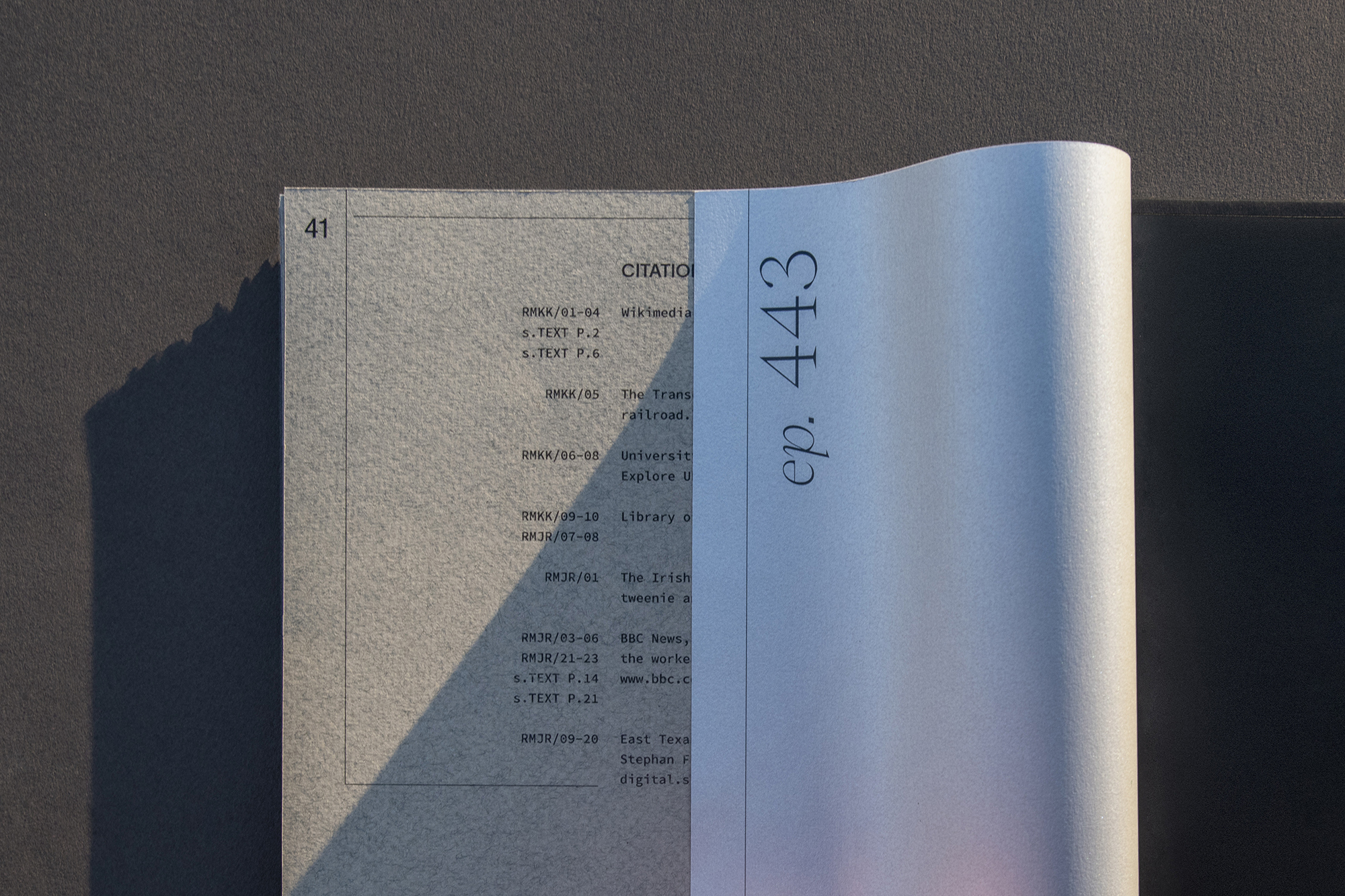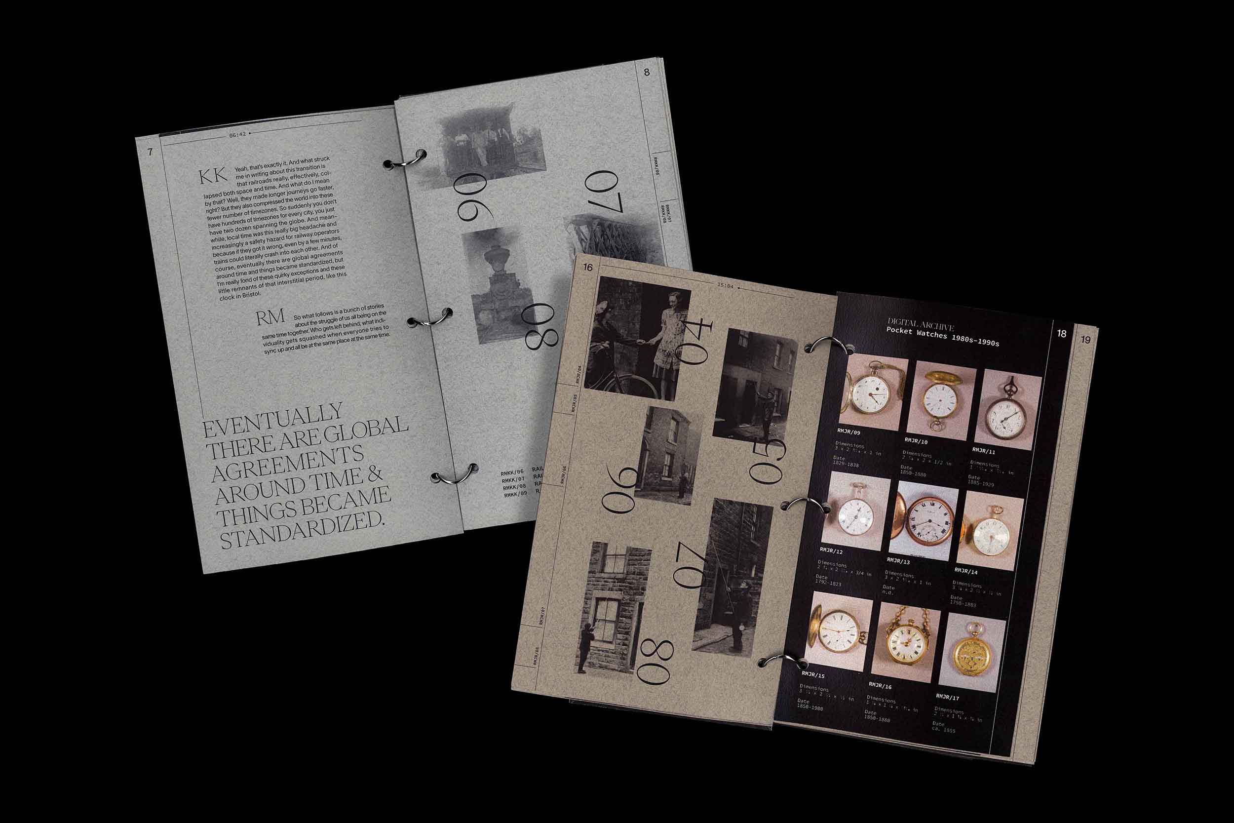 Adapted from Episode 443 from the podcast "99% Invisible", Matters of Time is a book that explores the history of timekeeping in 18th-century Britain. The ring-bound book printed on metallic silver paper resembles the body of a watch and recall the radiality and repetition of time.