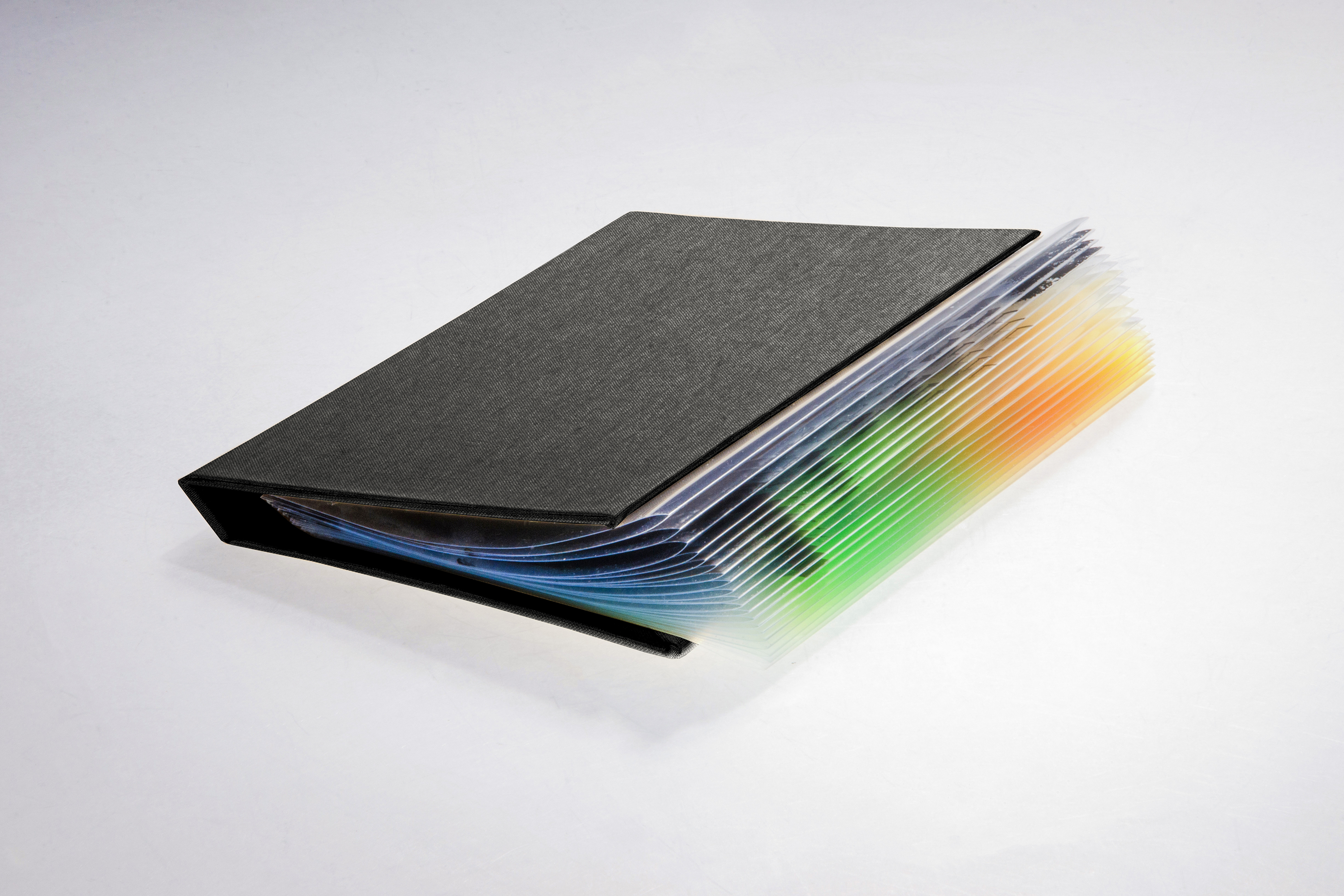 An accordion book printed on clear film, in the dimension of the intimate format of a diary. Each spread repeats a photograph of a place alongside a diary entry, but with every turn of the page, specific details are progressively erased, leaving the composition increasingly incomplete. A thin layer of gradient color that appears negligible on its own but becomes opaque in layers, reflects how nostalgia colors memory, simultaneously amplifying certain sentiments while obscuring others.